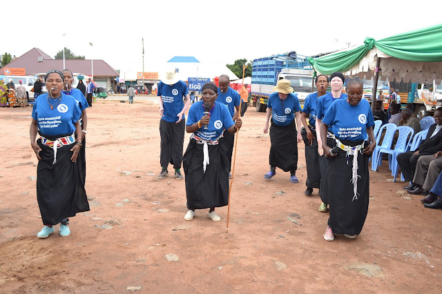 Kikundi cha ngoma cha mbalamwezi kikitoa burudani wakati wa kilele cha uzinduzi wa mfuko wa bima ya afya ya jamii (CHF) ulioboreshwa, mkoani Singida.