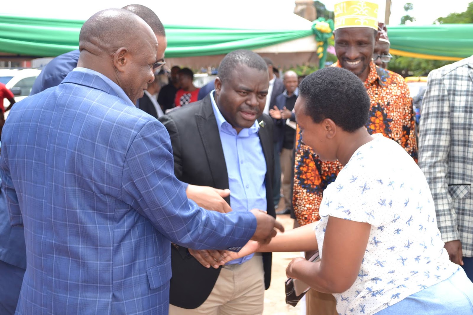 Mwakilishi wa shirika la World Vision mkoani Singida akipongezwa mara baada ya kuchangia kaya kadhaa za halmashauri mbalimbali za mkoa wa Singida ili aweze kupatiwa kadi ya huduma ya afya ya CHF iliyoboreshwa, wakati wa kilele cha uzinduzi wa mfuko wa bima ya afya ya jamii (CHF) ulioboreshwa, mkoani Singida.