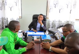 Mkurugenzi Mtendaji Ndg, Justice L. Kijazi akiwakaribisha Kamati ya Siasa ya Chama Tawala Mkoani Singida iliyofika Ofisini kwake mapema tarehe 4, Desemba 2018 kwa ajili ya kukagua Miradi ya Maen...